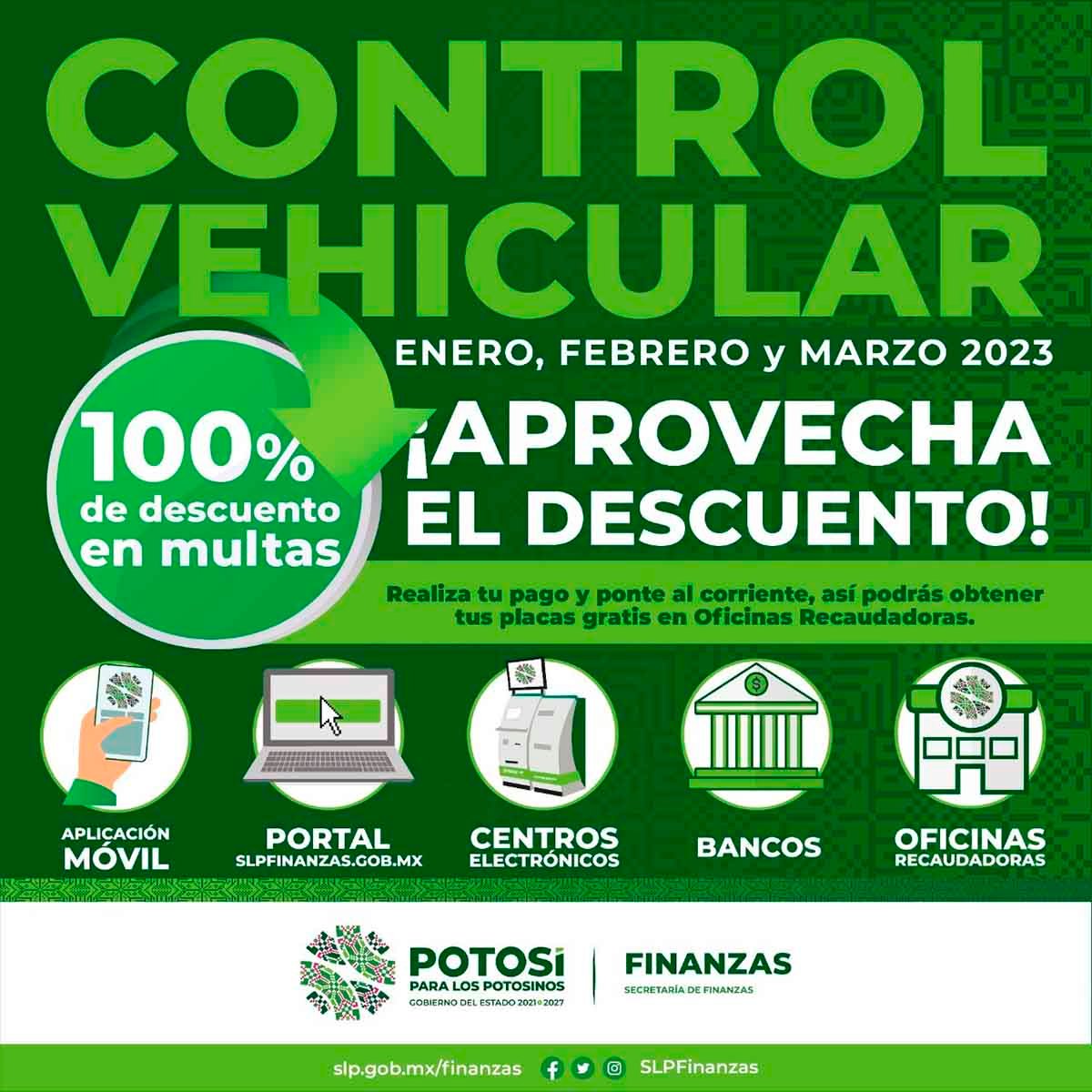 En apoyo a la economía familiar, el Gobierno de San Luis Potosí, a través de la Secretaría de Finanzas (Sefin) informó que el costo del pago de control vehicular 2023 no tiene variación en comparación con el año pasado, hasta el mes de febrero en el que será actualizado el costo de la UMA a nivel Nacional, adicional a que se establecieron beneficios en distintos conceptos.