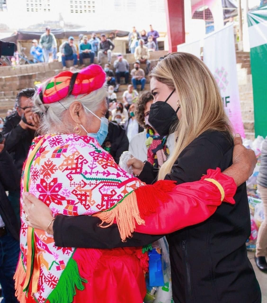 Las y los habitantes de Tampamolón Corona y de Tancanhuitz recibieron de manos de la presidenta estatal del DIF, Ruth González Silva, apoyos que representan un impulso para cubrir sus necesidades más apremiantes, por medio de insumos alimentarios con productos de la canasta básica y ayudas funcionales a favor de personas con discapacidad.