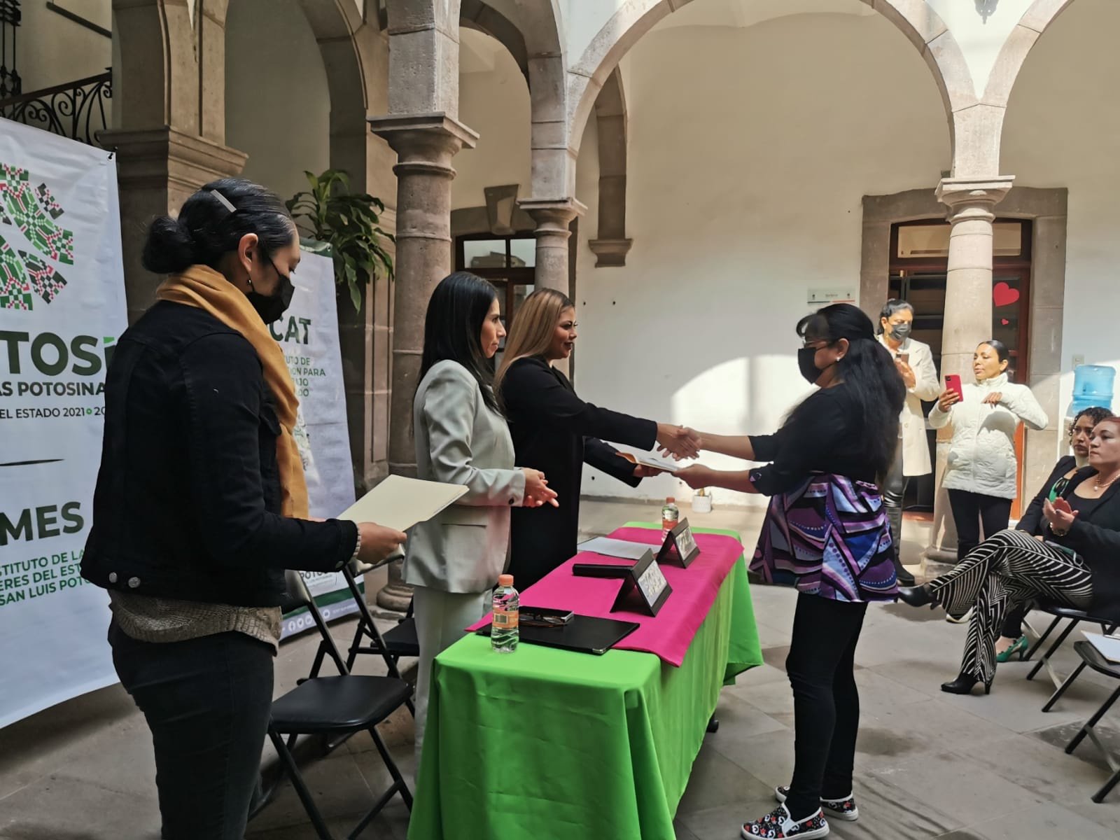 El evento fue presidido por la directora del Imes, Gloria Serrato Sánchez, y por la directora general del Icat, Estefanía Flores Saldierna quienes a nombre del Mandatario Estatal, Ricardo Gallardo Cardona, reconocieron el esmero y dedicación de las mujeres potosinas por emprender y formar parte del desarrollo económico en el Estado.