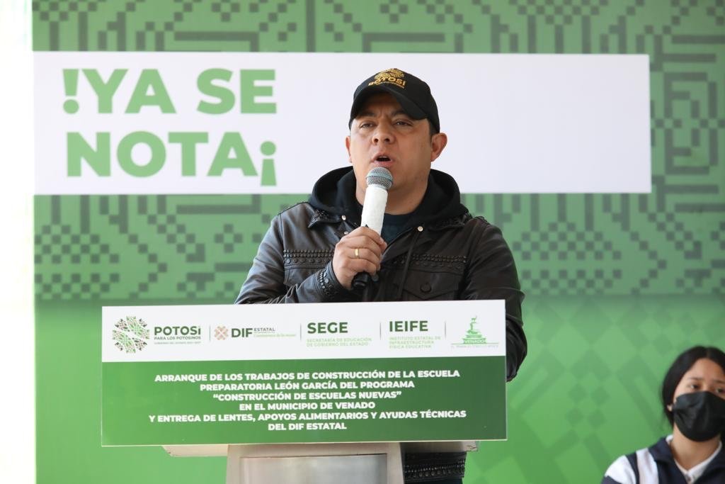Venado, San Luis Potosí.- La transformación de San Luis Potosí, avanza hacia todas direcciones y a todos los rincones del Estado, con la educación como catalizadora del progreso para fortalecer los niveles de bienestar social y crecimiento económico, con acciones como el arranque del Gobernador Ricardo Gallardo Cardona a las obras del nuevo edificio de la preparatoria León García dentro del programa “Construcción de Escuelas Nuevas” con una inversión de 10.6 millones de pesos.