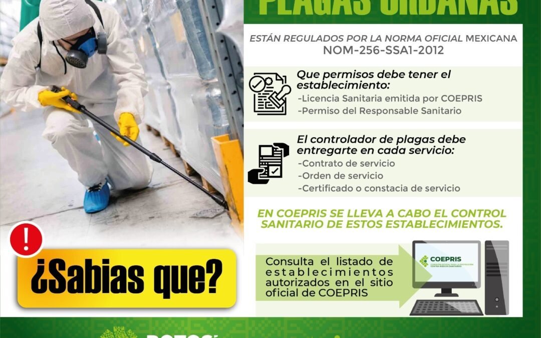 Por último, la COEPRIS pone a disposición de la población, el listado de controladores de plagas urbanas que dan cumplimiento a la normatividad sanitaria y que por lo tanto, cuentan con una Licencia Sanitaria; consulta en http://coepris.slpsalud.gob.mx/index.php/proyectos/licencias recuerda que una buena selección evita riesgos a la salud.