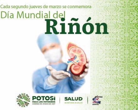 El Día del Riñón se celebra en todo el mundo el segundo jueves de marzo de cada año. Esta es una fecha que recuerda la importancia de nuestros riñones para mantener nuestro cuerpo saludable y funcionando adecuadamente. Según datos más recientes del Centro Nacional de Trasplantes (CENATRA), hoy existen 20 mil 325 personas inscritas a la espera de trasplante, de estas 15 mil 878 requieren un trasplante renal en el país, de éstas 130 pertenecen a San Luis Potosí.