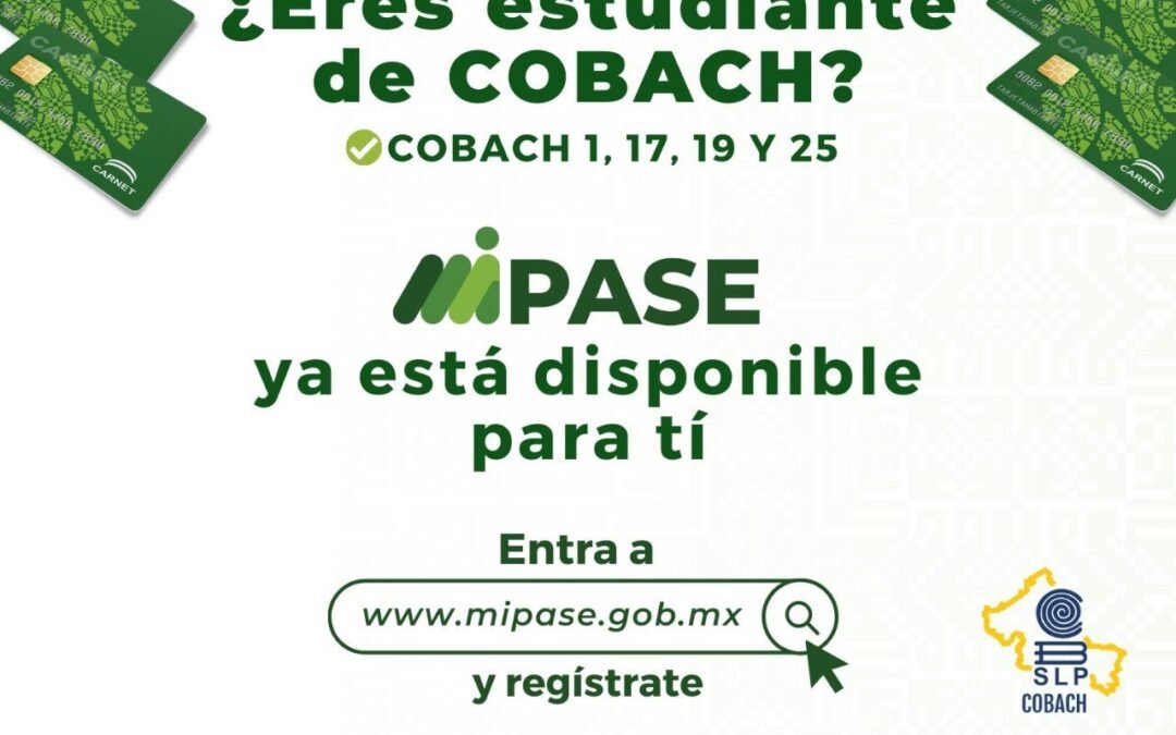 En cumplimiento a un compromiso más del Gobernador de San Luis Potosí, Ricardo Gallardo Cardona, con la juventud potosina, la Secretaría de Comunicaciones y Transportes (SCT) habilitó la plataforma electrónica del Programa de Apoyo y Subsidio a Estudiantes (Mi Pase), para que las y los estudiantes de Colegio de Bachilleres (Cobach) de la zona metropolitana de San Luis Potosí puedan realizar su registro para acceder a becas de transporte gratuito.