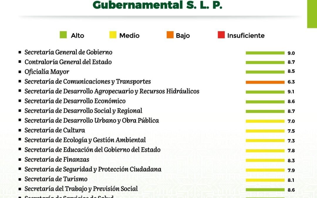 Gallardo Cardona recordó que el semáforo cuenta con cuatro valoraciones: alto, medio, bajo e insuficiente, que sirven para evaluar el actuar de las y los funcionarios estatales, mediante los parámetros de atención ciudadana, que incluye el seguimiento a las solicitudes hechas al Gobernador; el cumplimiento al Plan Estatal de Desarrollo 2021-2027 en sus objetivos y metas; la comunicación externa como la generación de información, eventos, manejo de redes sociales y atención a medios y un apartado de gobernabilidad, donde se observa la relación interinstitucional.