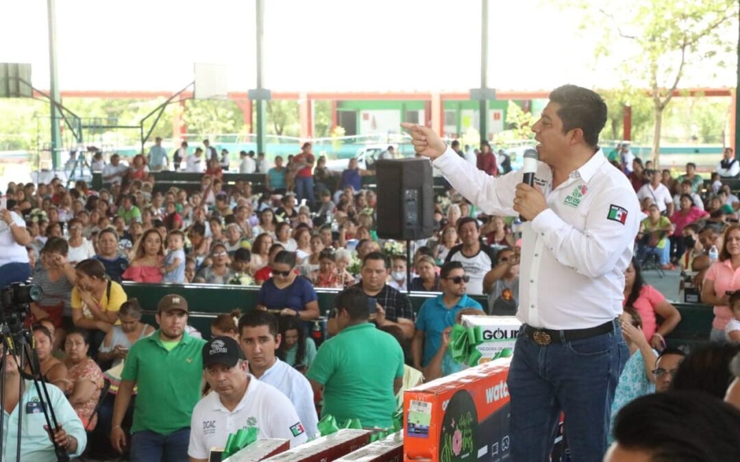 Gallardo Cardona, de forma cercana y cariñosa, convivió con las asistentes y las felicitó por el generoso trabajo que realizan con sus hijas e hijos, así como por la celebración del Día de las Madres, que culminó con la rifa de regalos
