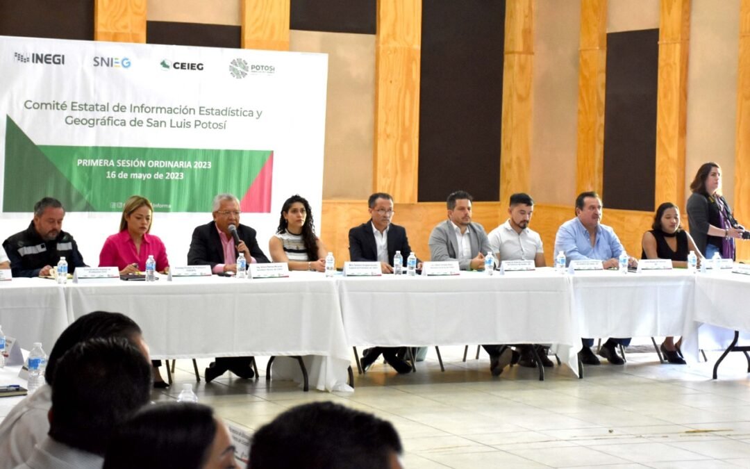 Durante la primera sesión ordinaria del comité CEIEG-SLP llevó a cabo su primera sesión ordinaria 2023, integrada por 34 funcionarios estatales y el Instituto Nacional de Estadística y Geografía (INEGI), se presentaron tres proyectos que fomentarán servicios de información estadística y geográfica en la que la ciudadanía consultar de manera más sencilla, información del quehacer gubernamental.