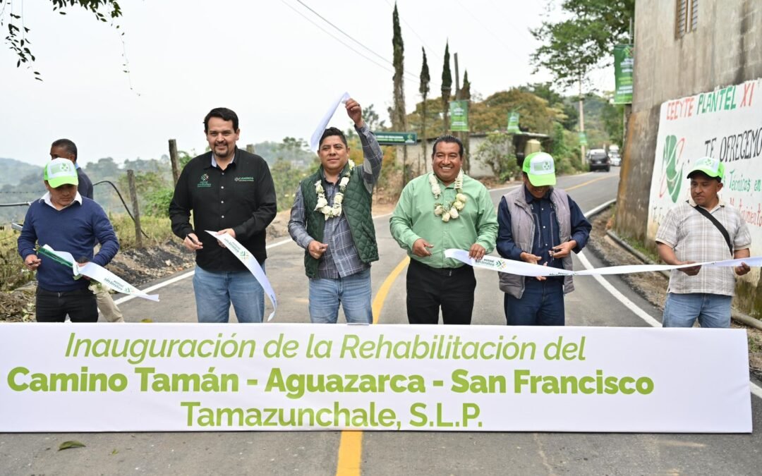 Cómo parte de la moderniación histórica en caminos y carreteras, el Mandatario potosino entregó el Camino Entronque Carretera Federal 102–Santa María Picula con una inversión de 21 millones de pesos, el Camino Aguazarca–San Francisco de 6 kilómetros como parte del circuito hasta Tamán con impacto en 27 comunidades la sierra de Tamazunchale y una inversión de 90 millones de pesos, la rehabilitación Retroceso–Santiago Centro de 10 millones de pesos, además del arranque del Camino Santiago Centro–Tlalnepantla con una inversión de 29 millones de pesos.