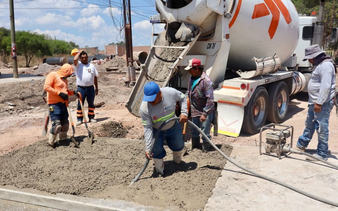 El Gobierno del Estado realiza el colado de pavimento, trabajos de base y compactación e infraestructura hidráulica para mejorar la movilidad en la zona.